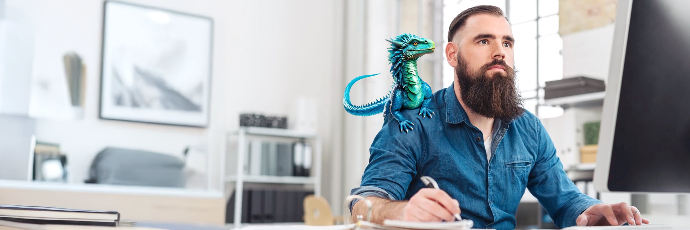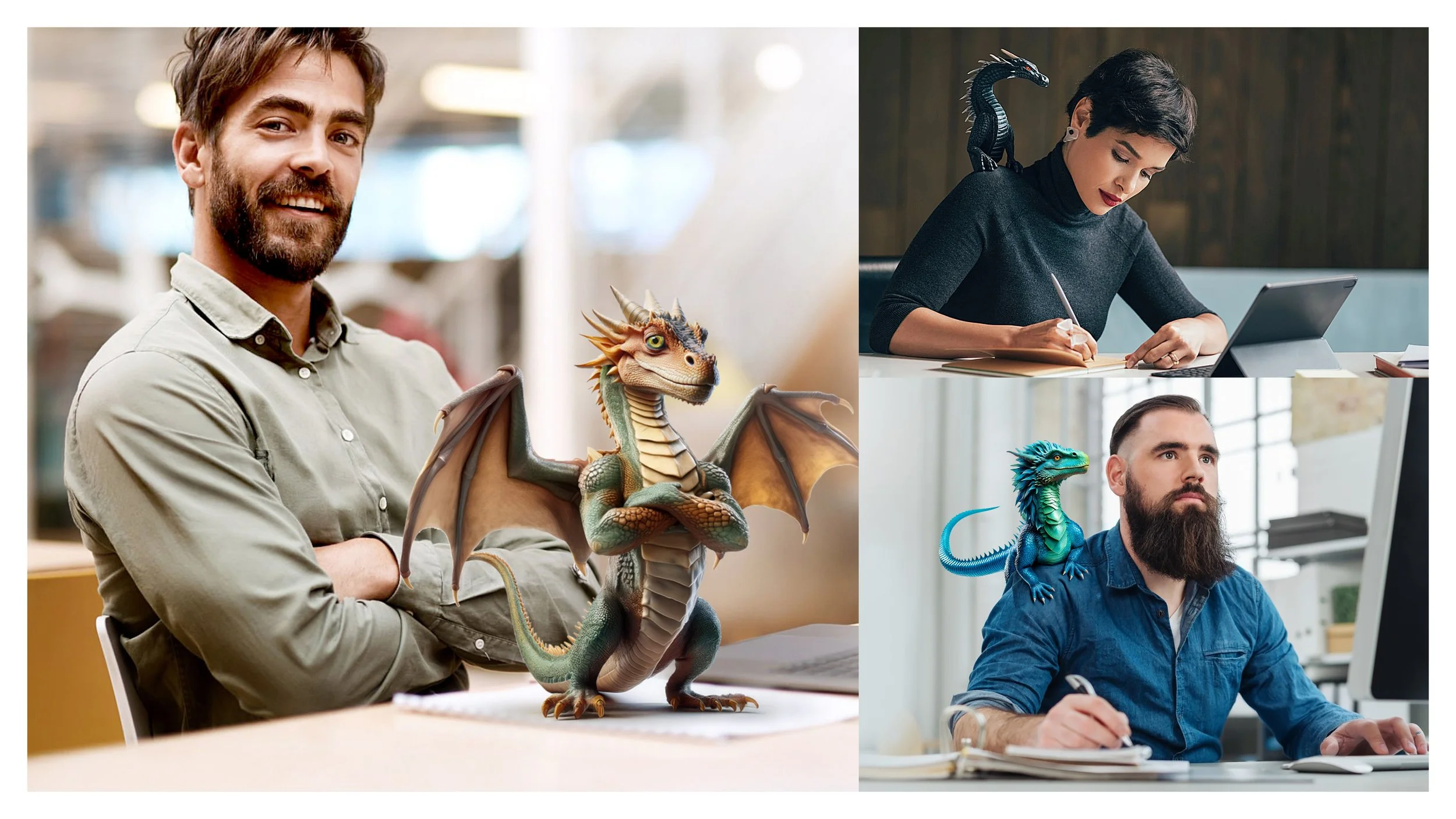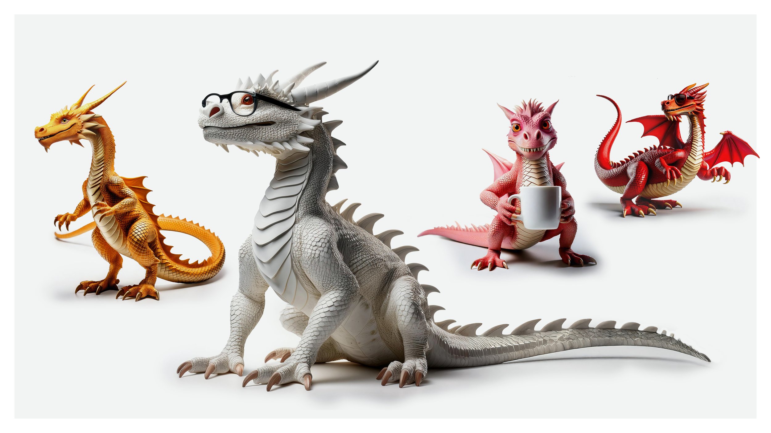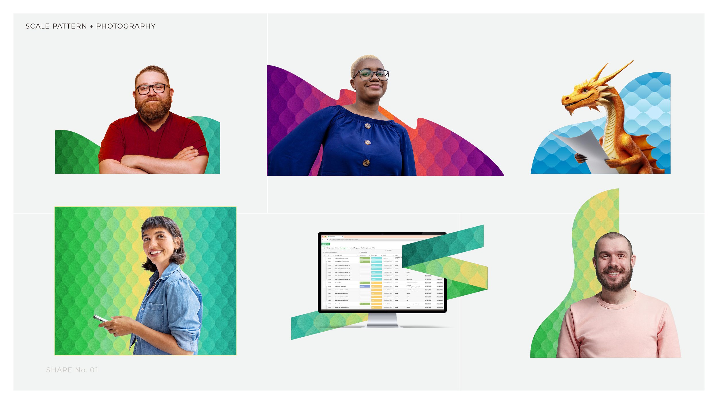 Using a combination of design techniques, including Adobe generative AI, we created a wide range of mini-dragons and placed them in work situations. These beasts helped us speak to the many specialized teammates and tech that Screendragon brings to every workday.
